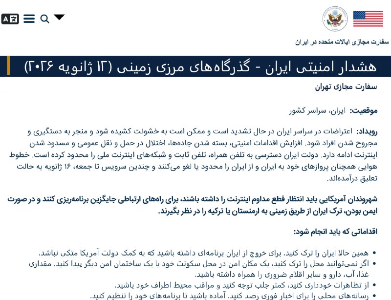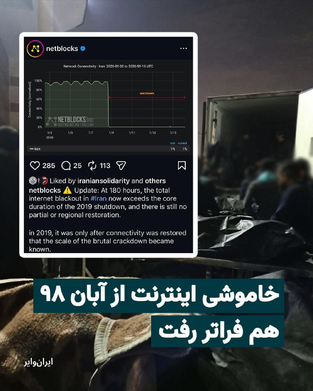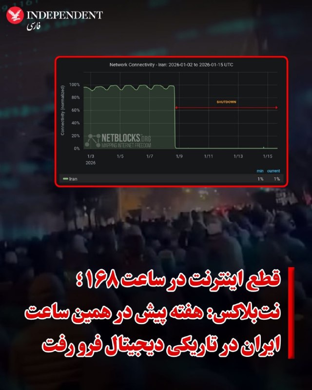 🔸NetBlocks, which monitors and reports internet disruptions, announced at 8 AM Iranian time on Saturday, January 20th, that the nationwide internet shutdown has entered its 36th hour and severely limited Iranians' ability to check on the safety of their friends and loved ones.